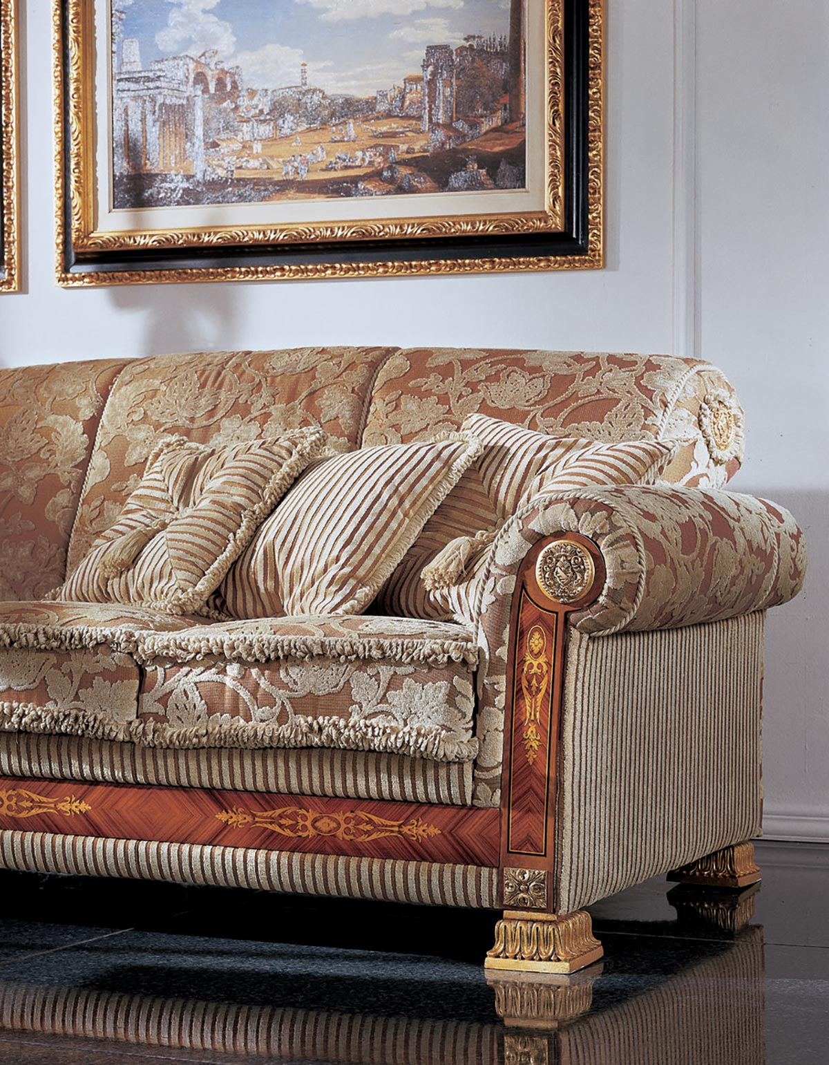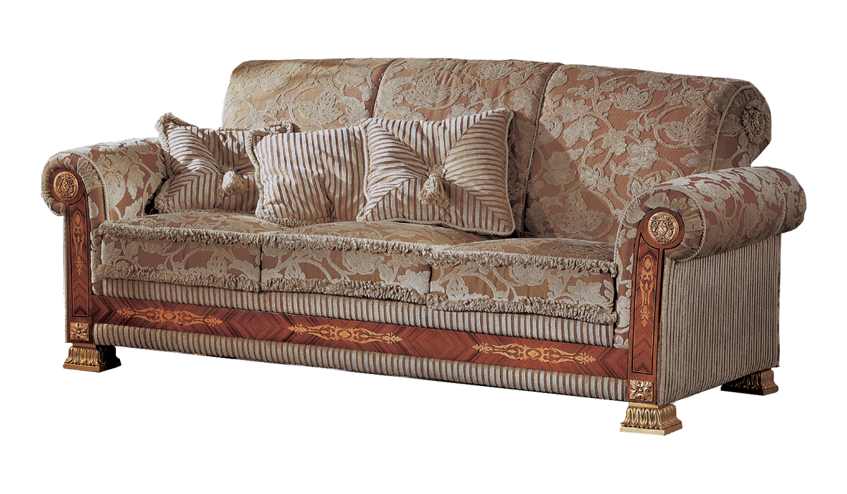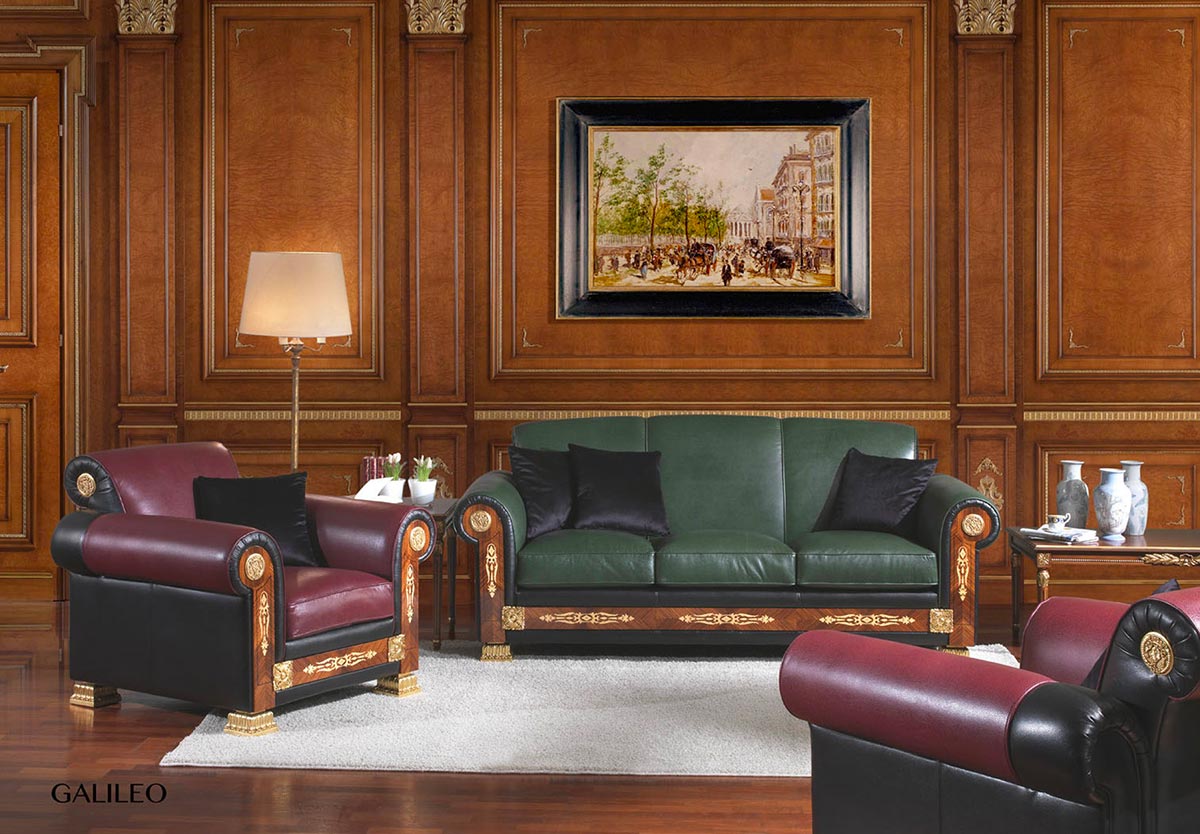 Un divano dallo stile imperiale, si manifesta nella sua imponenza attraverso linee decise, seguite dal frontale in legno che ne supporta la maestosità. Anche i piedini a pinta quadrata contribuiscono a far emergere negli occhi di chi osserva “Galileo” un senso di forza e prestigio. L’attitudine alla grandezza è delineata anche dall’imbottitura: i braccioli, dalla notevole dimensione, sono impreziositi da un medaglione posto al centro, così come la cuscinatura dello schienale assume un ruolo centrale date le dimensioni e la forma a ricciolo che assume nella parte posteriore. Un divano che non passa certo inosservato, adatto a chi vuole un salotto di una certa importanza. Disponibile a richiesta su misura.
