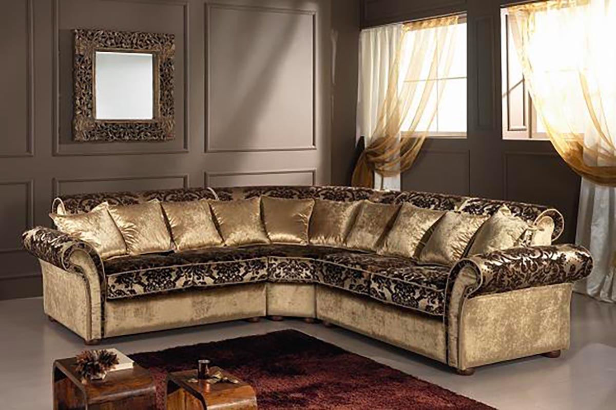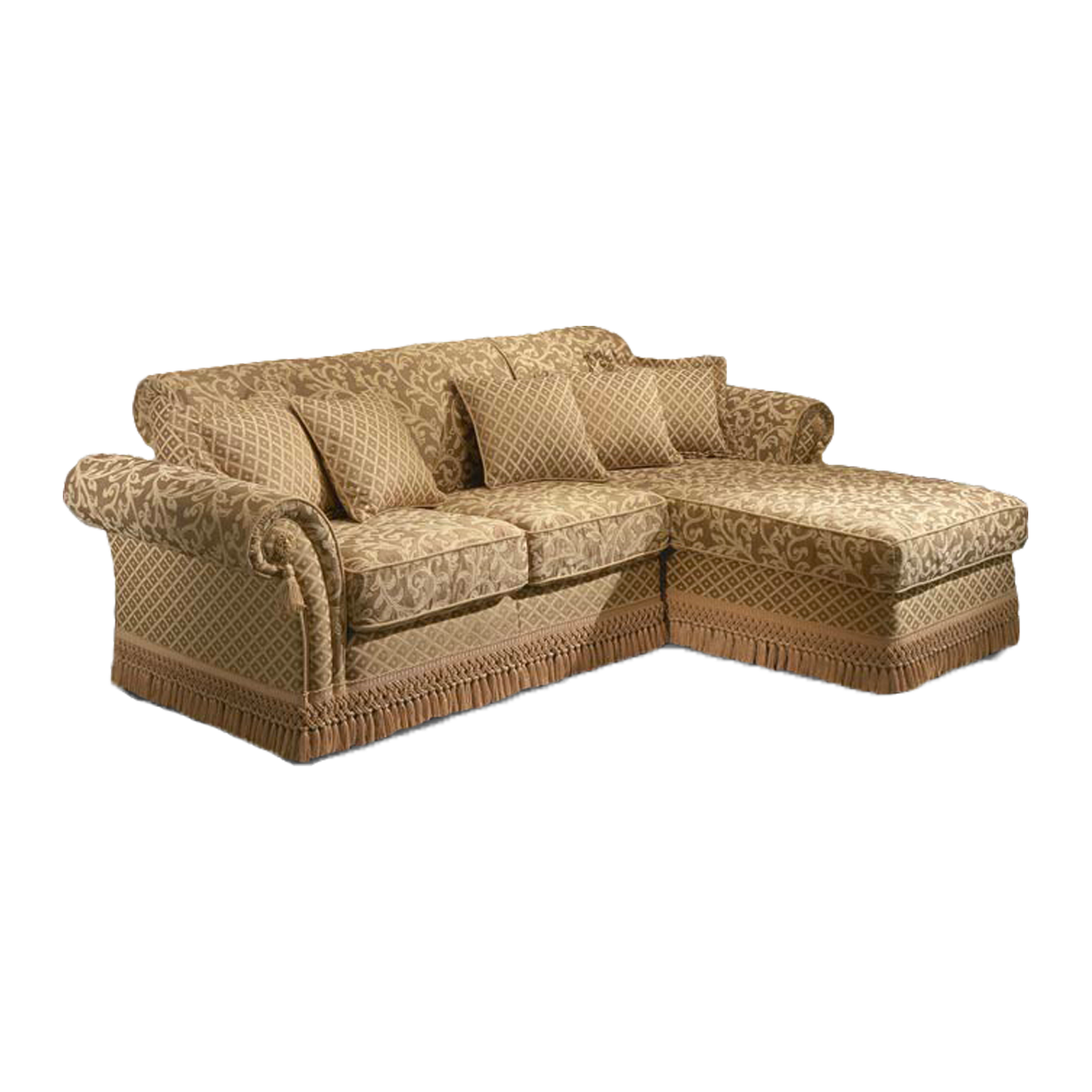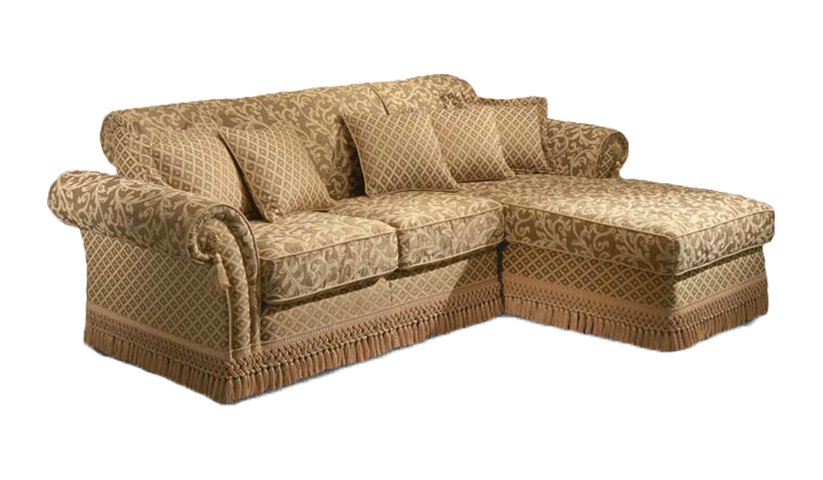 Importante composizione angolare dalla forma morbida e sinuosa, che offre un’alta qualità di confort per ambienti di classe. Divano raffinato ed elegante nelle forme di rigore tradizionale è il modello ideale per ogni tipo di ambientazione. Piccoli dettagli quali frange e passamanerie ne ingentiliscono e impreziosiscono le forme. Diverse sono le combinazioni di colori possibili per la passamaneria e la cuscineria, che permettono di dare il giusto carattere al salotto. Nei rivestimenti, motivi floreali e salotti a righe verticali possono facilmente accostarsi, con risultati originali, ma sempre eleganti e raffinati. Disponibile a richiesta su misura.